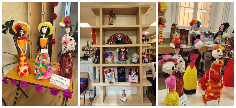 - exposition des productions d'élèves réalisées en arts plastiques sur le thème de Dia de los muertos avec Mme CASSARD.